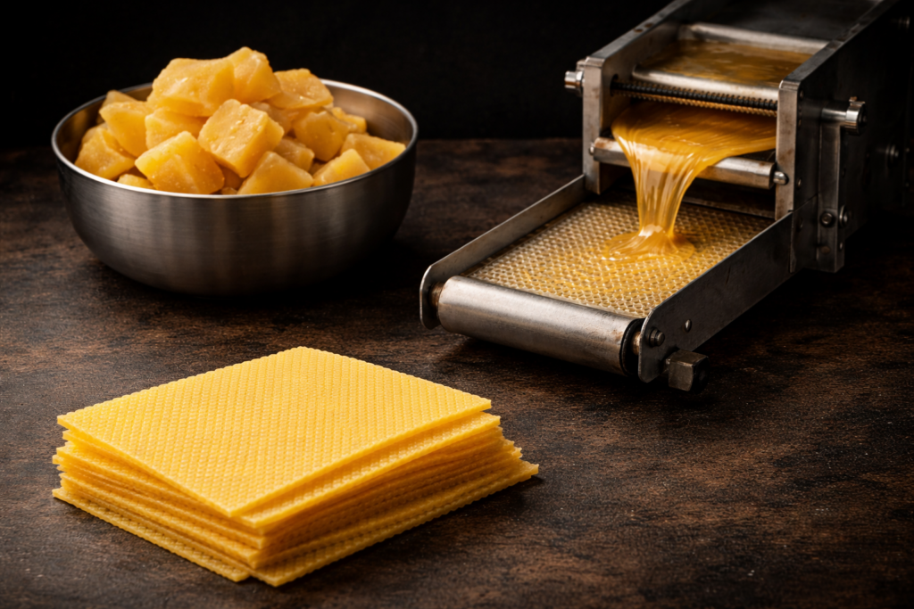 Wir kaufen Ihr Altwachs an und organisieren die fachgerechte Weiterverarbeitung über unsere Partner. Gleichzeitig können Sie bei uns hochwertige neue Mittelwände für Ihre Imkerei erwerben.